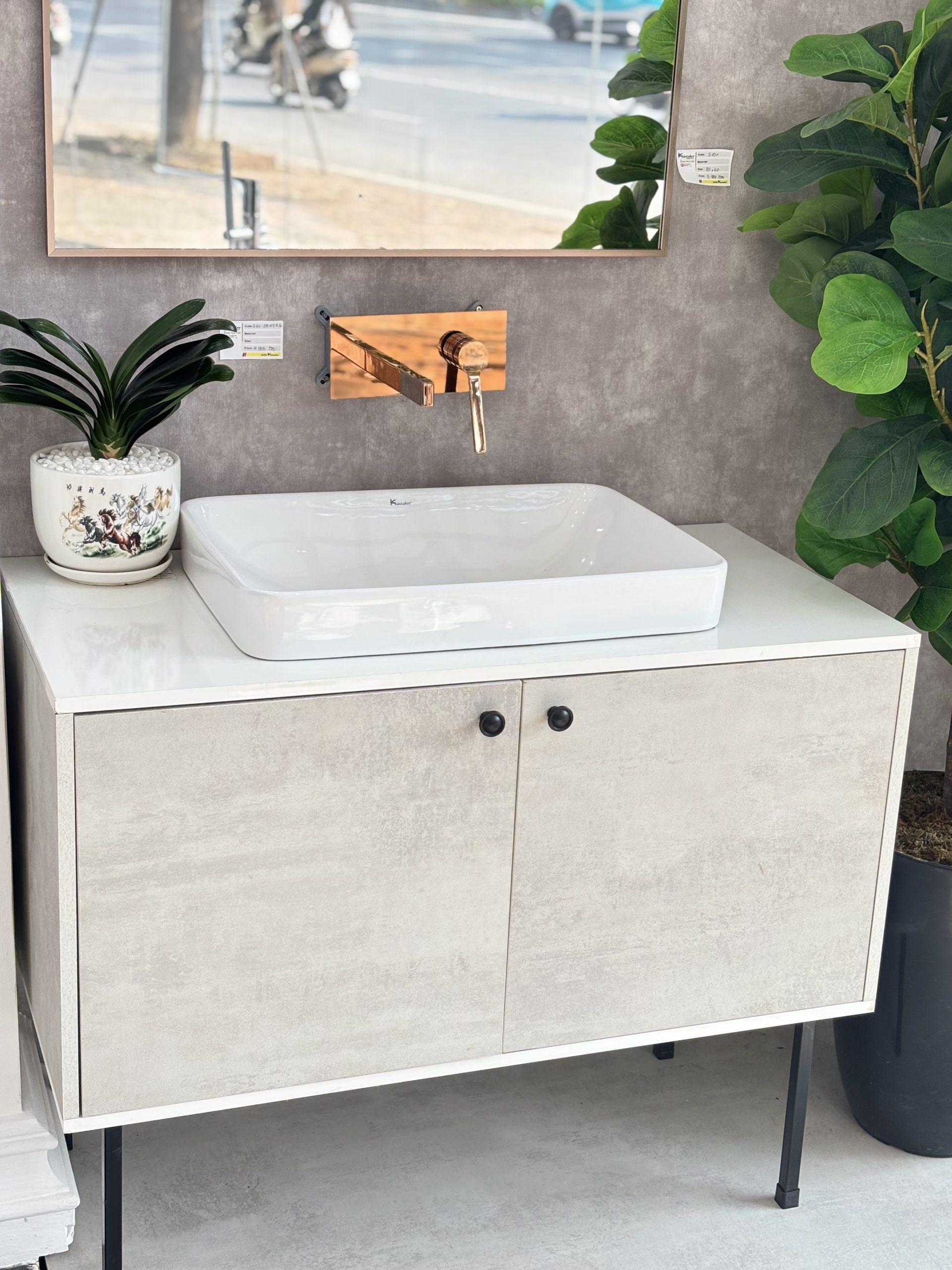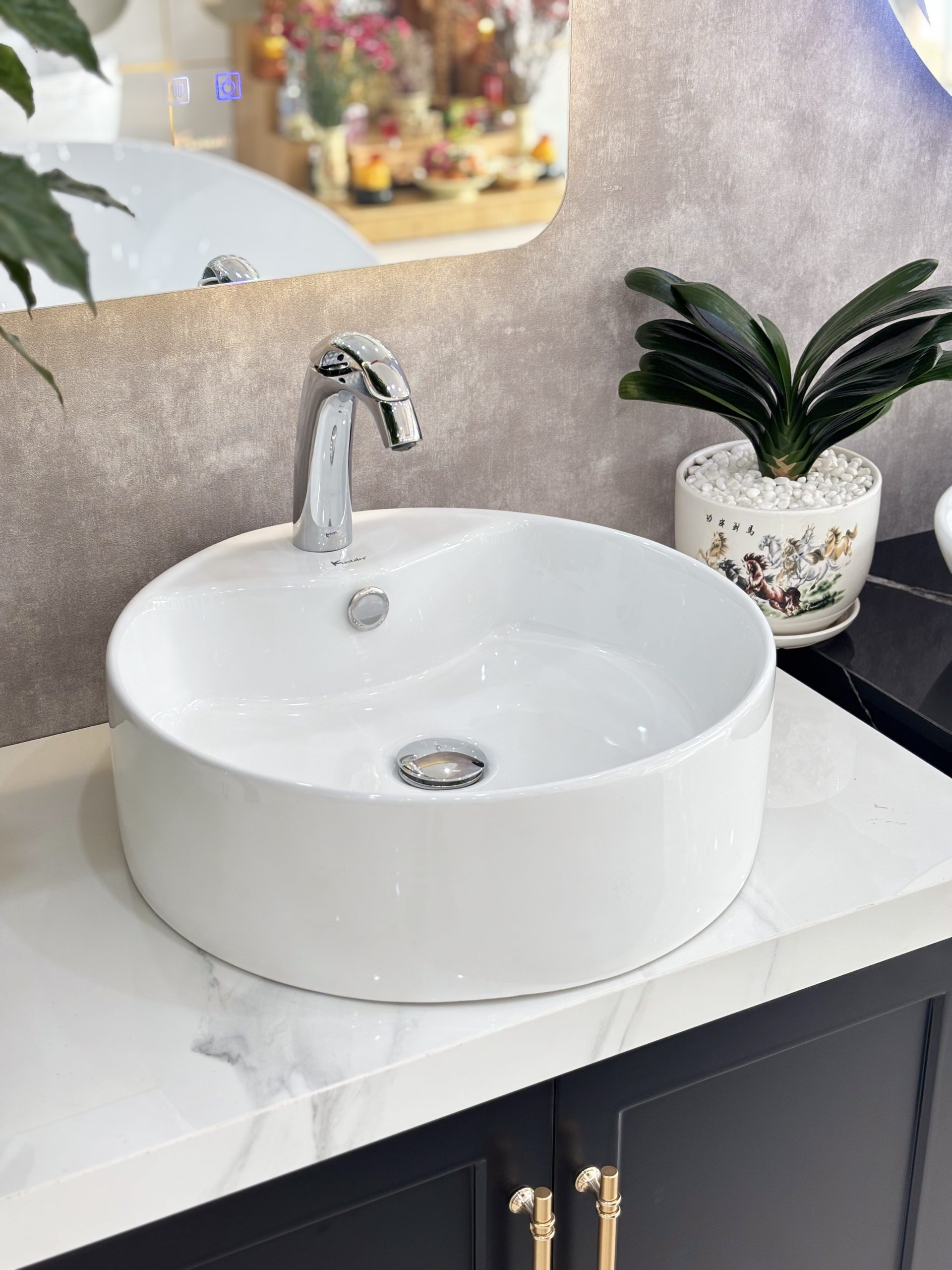 1. Lavabo dương kết hợp tủ + vòi lavabo cao